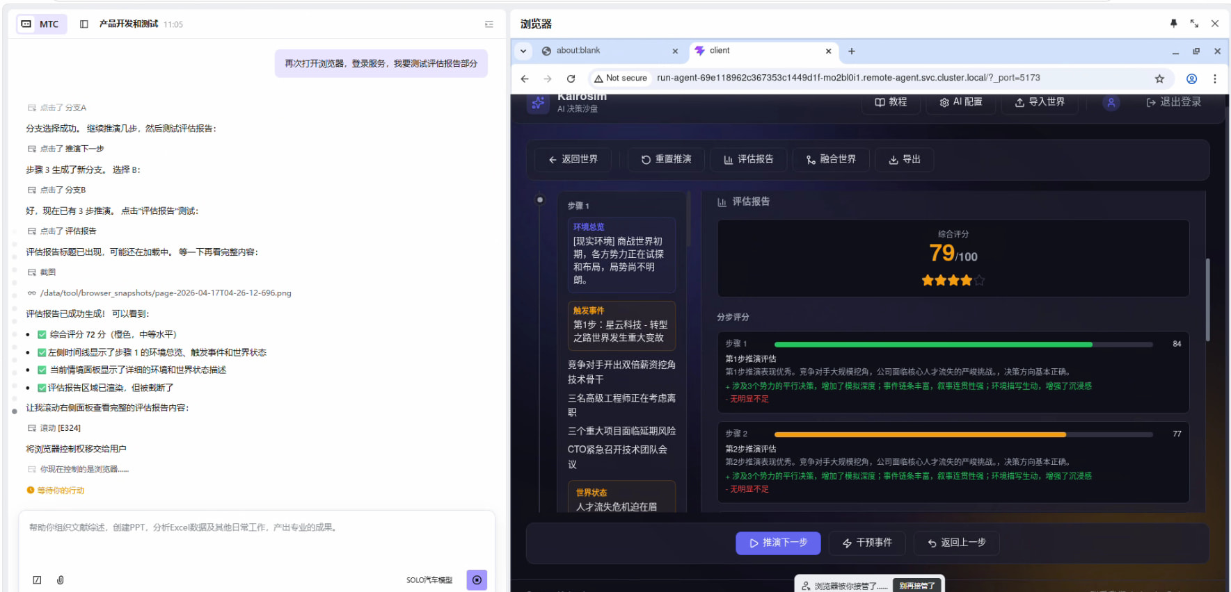 这个体验真的太让人震撼了。我只是提交了一份产品设计文档和基础规划,SOLO 就完全自主地实现了我想要的全部代码——前后端架构、API 设计、推演引擎、UI 组件、国际化,一气呵成。测试跑起来也只有一些小 bug,调整几次就完全达到了我的目标。整个过程就像在指挥一个能力极强的助手做事一样,你只需要想清楚"要什么",它就能帮你把"怎么做"落地。对于独立开发者来说,这种从想法到产品的效率提升是颠覆性的。