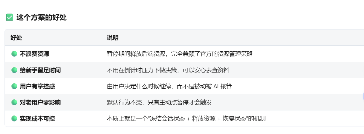 后端资源释放 → 不白白占用服务器(这一点很重要,兼顾了资源管理)