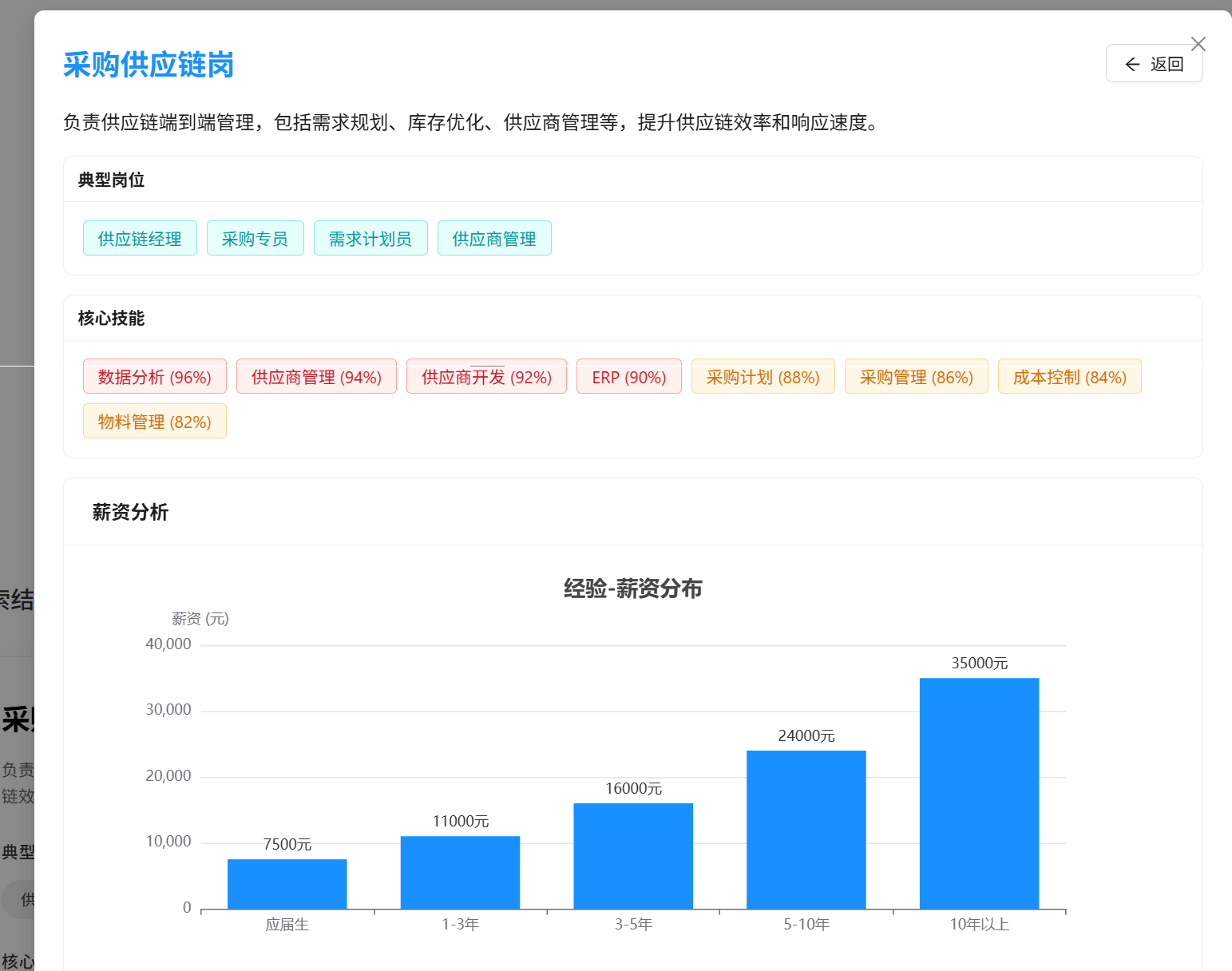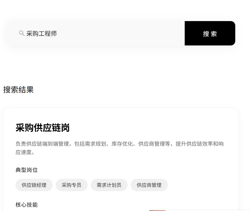 搜索功能:支持输入三级职位名称,如"采购工程师"、"物流专员"等