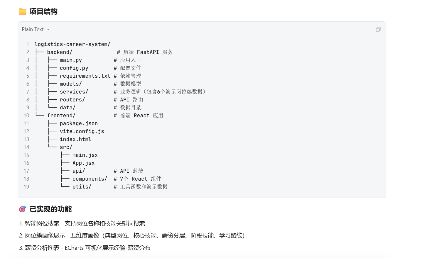 [App.jsx](file:///workspace/logistics-career-system/frontend/src/App.jsx):前端主界面,实现搜索和结果展示