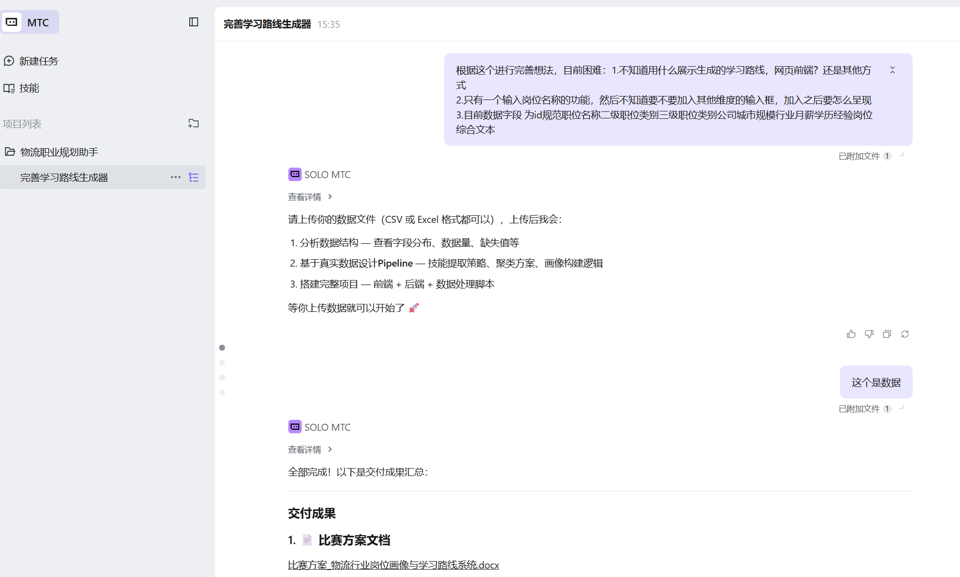 面向物流行业求职者和从业者,在职业规划和技能提升场景下提供智能岗位画像和个性化学习路线生成服务,目前通过演示数据验证有效。