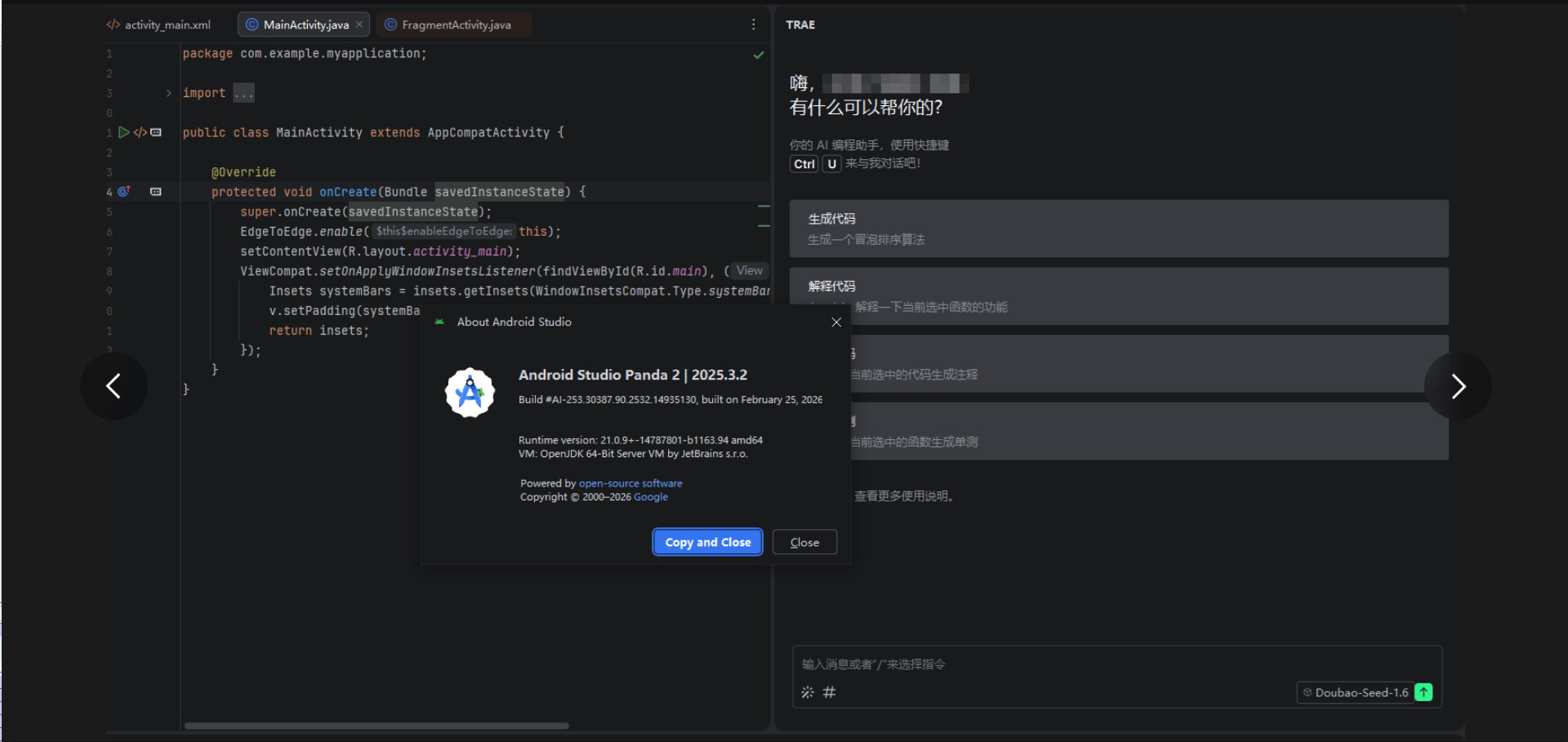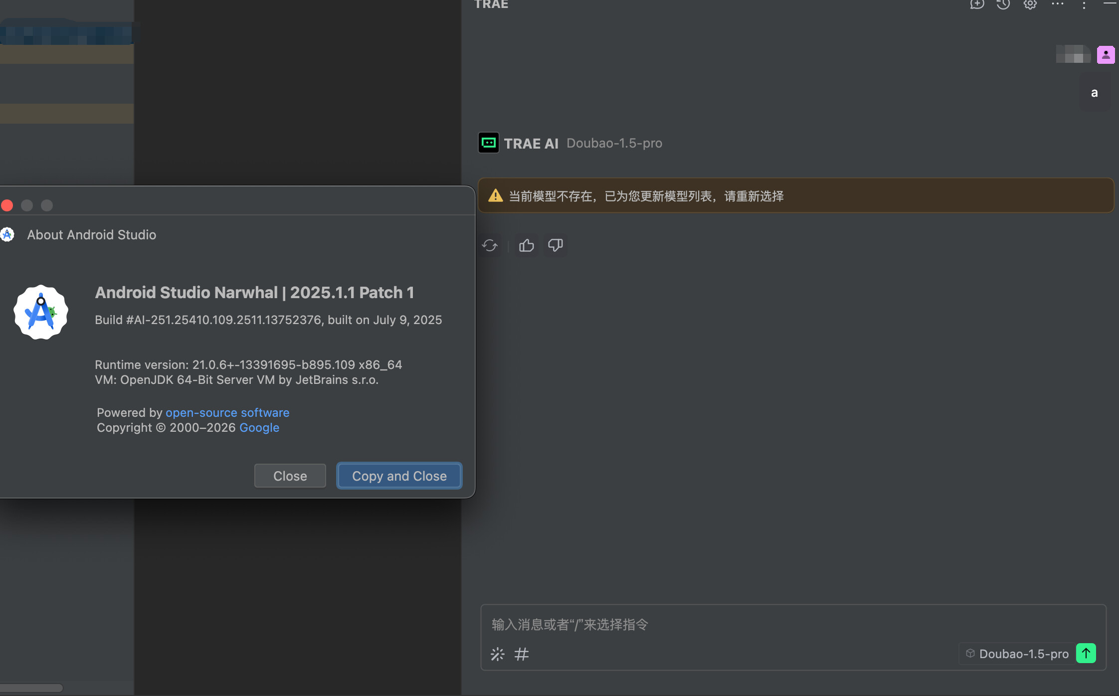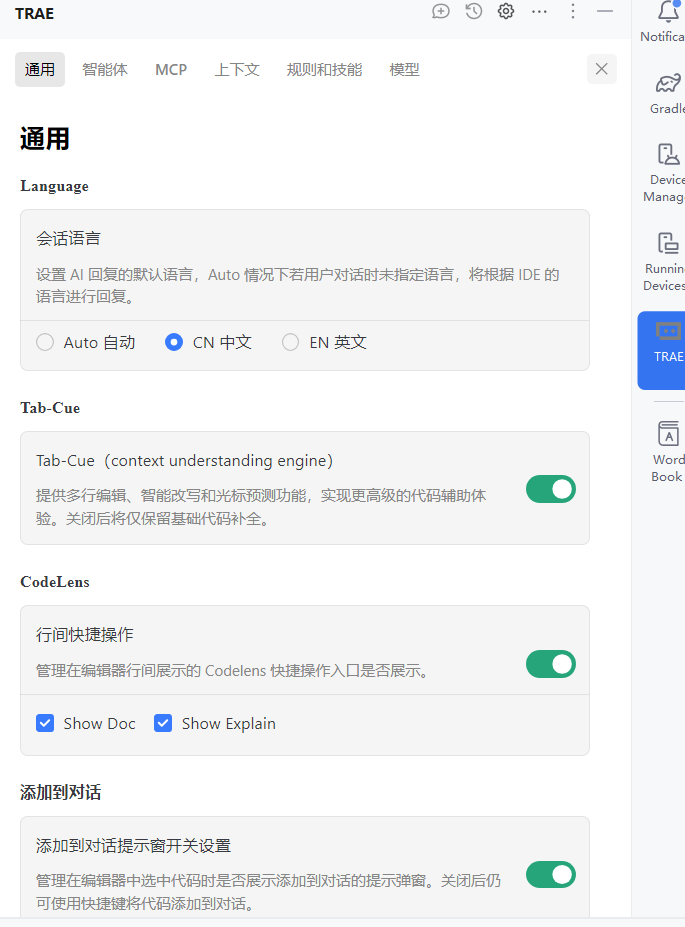 我来帮你看看这个问题。先加载一下 TRAE 插件的支持技能,然后搜索相关信息。我看到你在 Android Studio 中使用 TRAE 插件遇到了模型选择和设置功能的问题。让我先看看 JetBrains 插件相关的排查指南。现在我来搜索一下插件版本和模型列表的相关信息。让我再搜索一下插件版本和更新的相关信息。