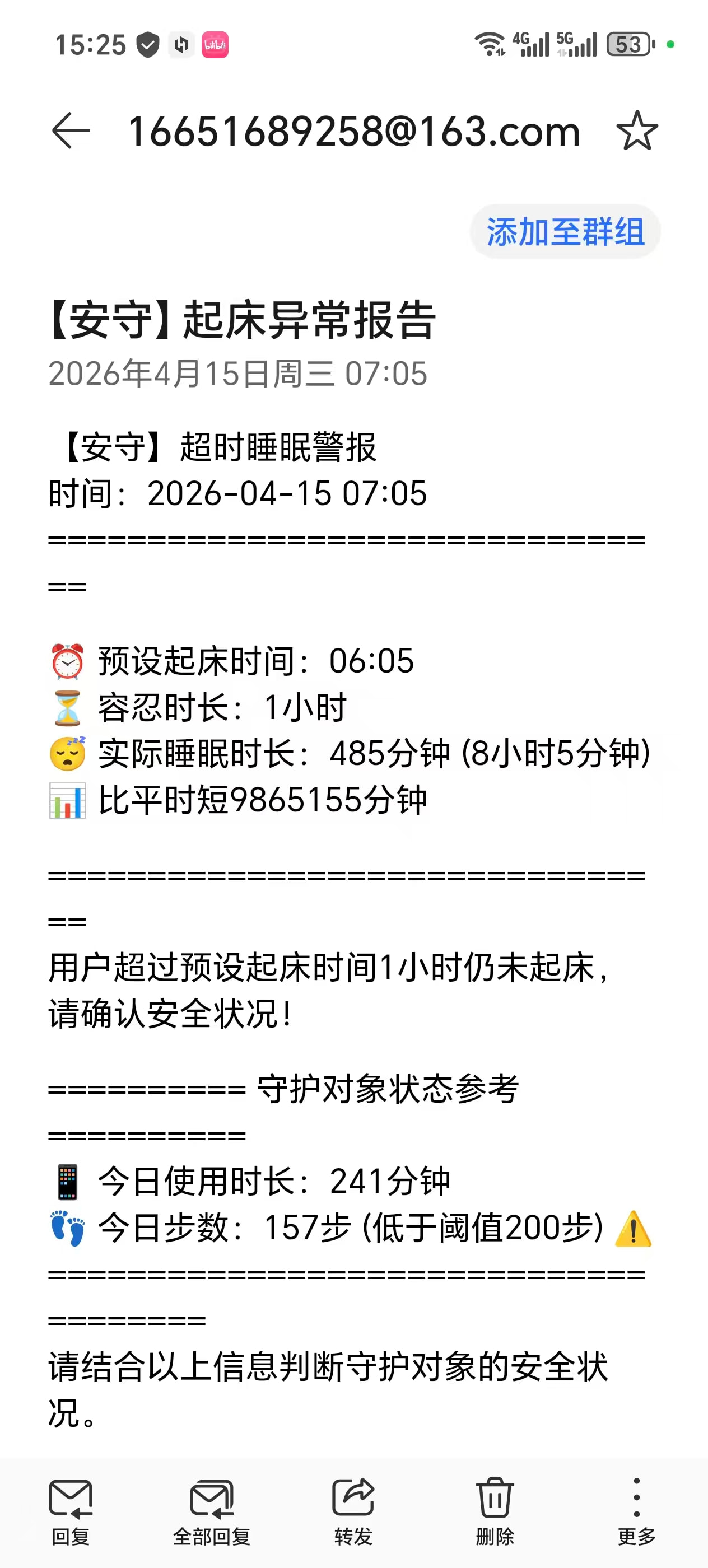 - 邮件配置是否完整?→ 是(7:50 签到警报成功)