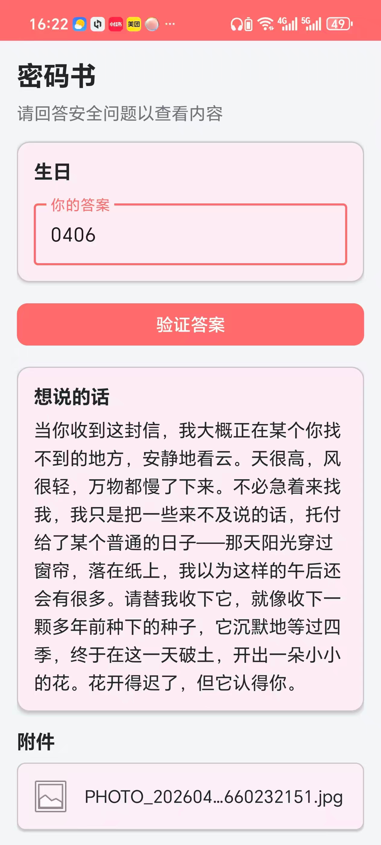 用户可以在任何时候,写下那些“如果有一天我来不及了,希望你知道”的话。这些话被加密封存,只有预设的条件被触发时——比如手机连续数日无任何操作——才会发送给指定的人。它不是遗言,而是一颗提前种下的种子,在合适的时候开花。