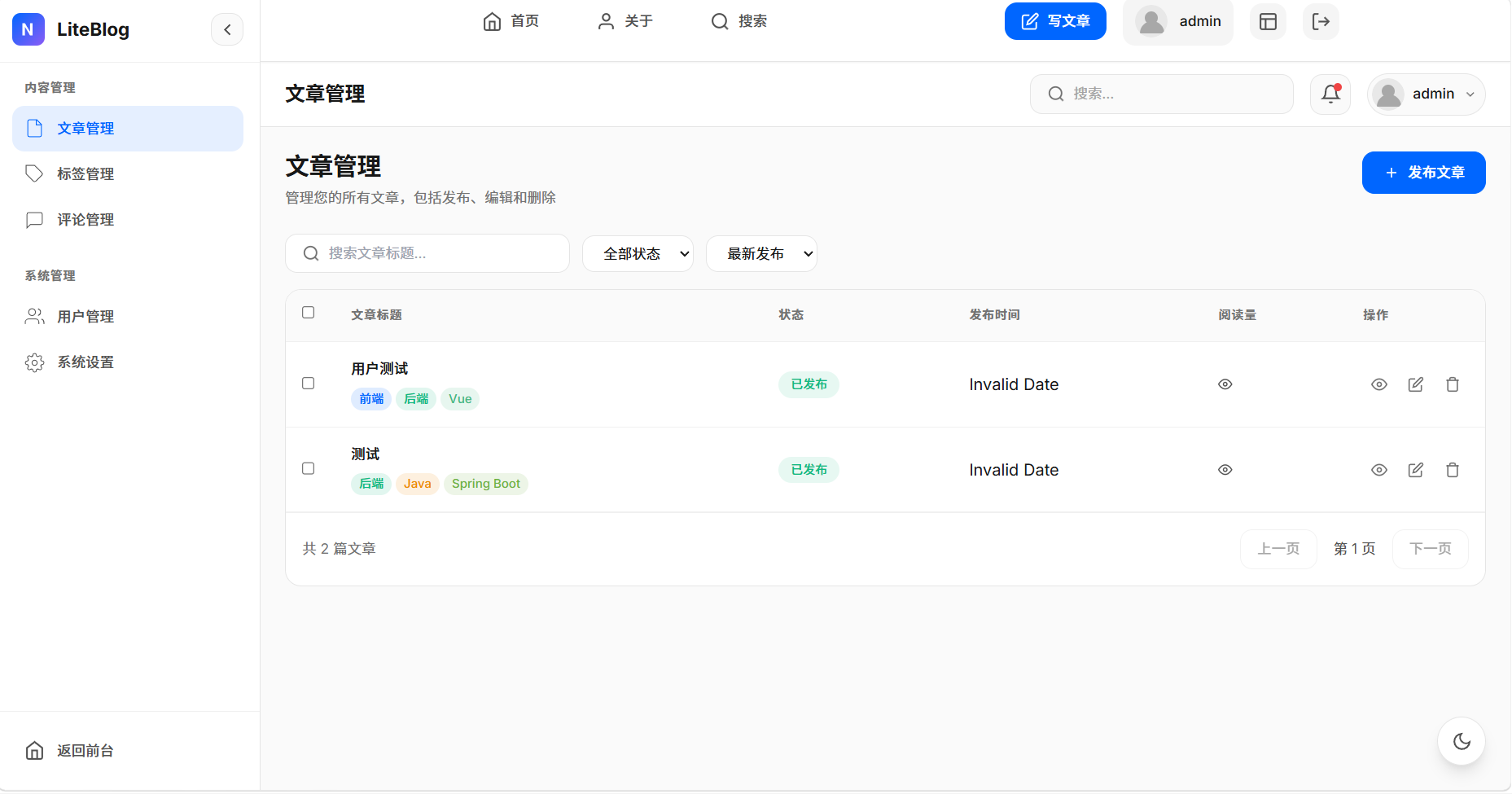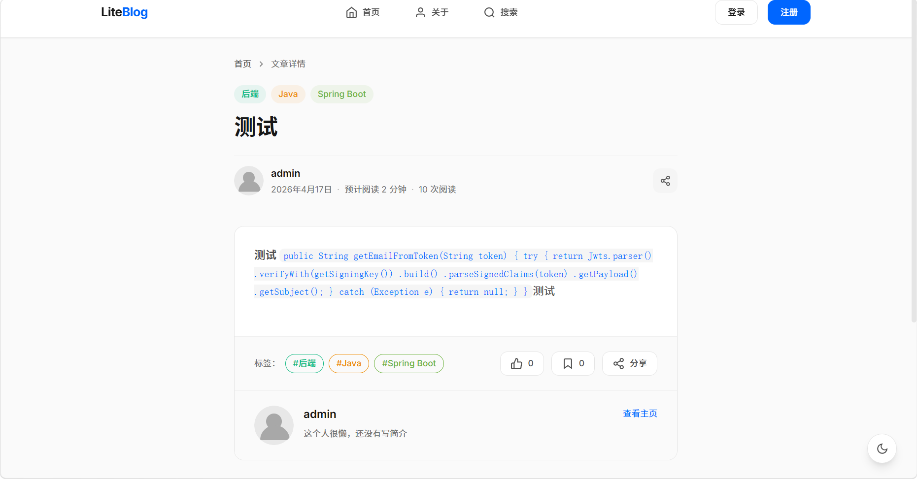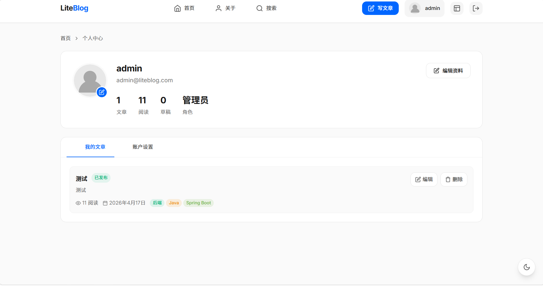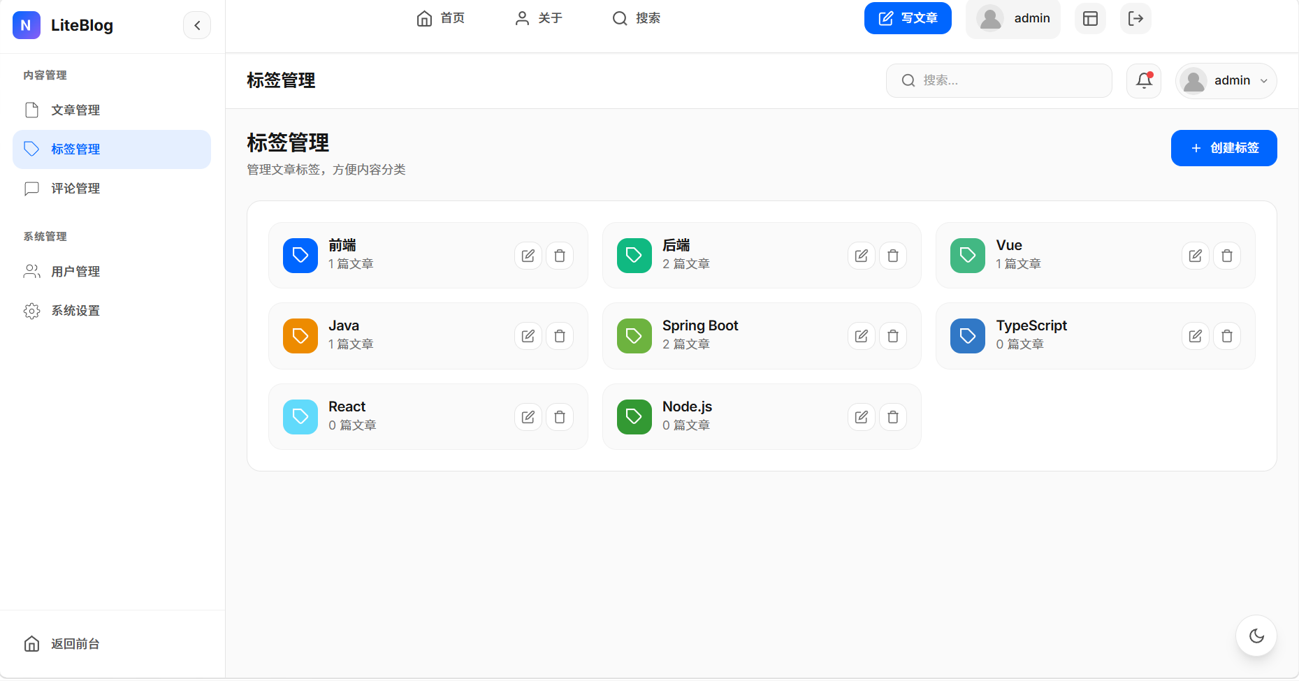 LiteBlog 已实现一个功能完整、代码规范的个人博客系统: