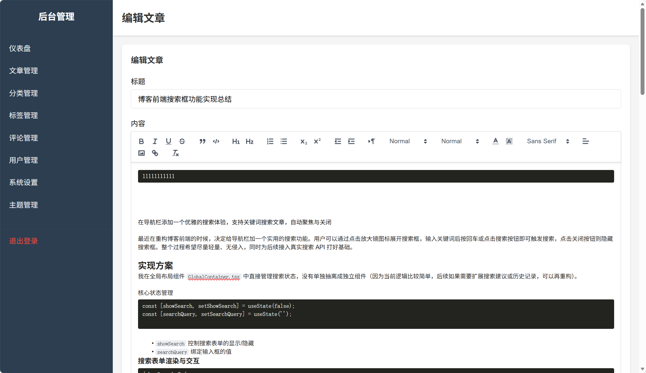 文章编辑、分类管理、标签管理、用户管理、评论管理