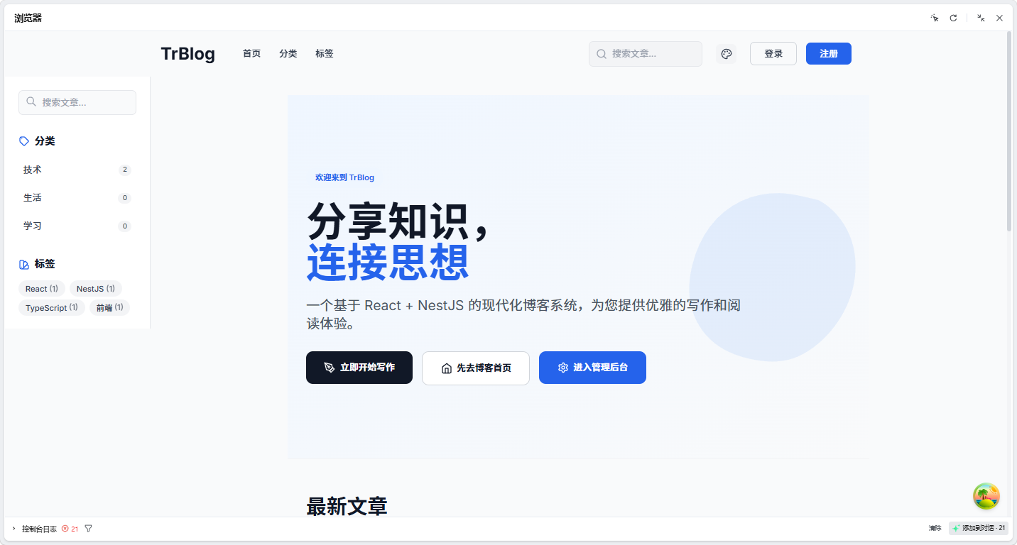 使用 React + NestJS + PostgreSQL 构建的完整博客管理平台
