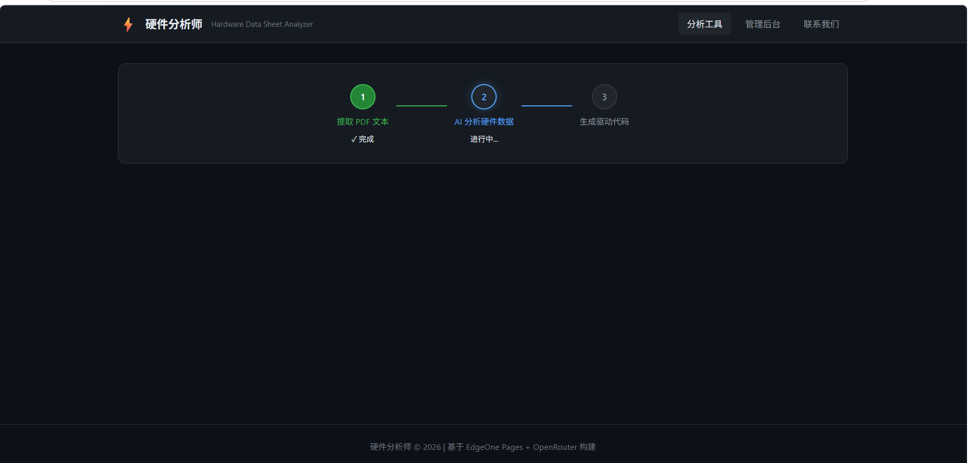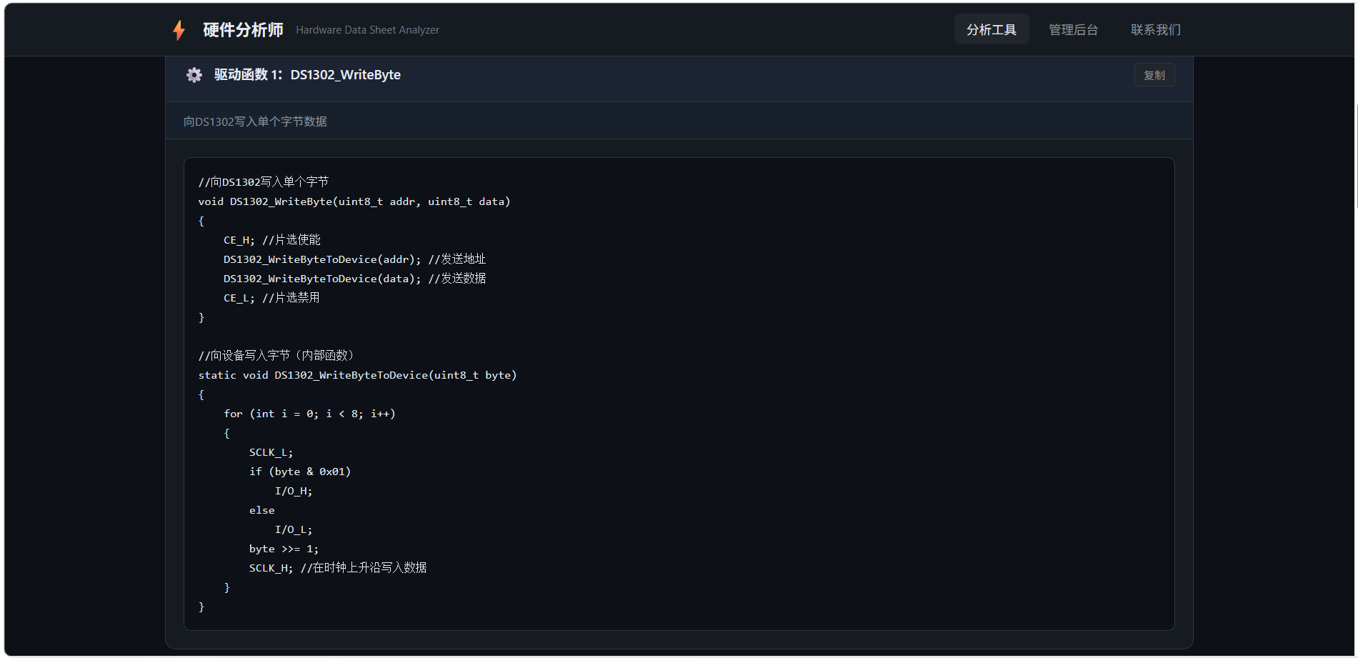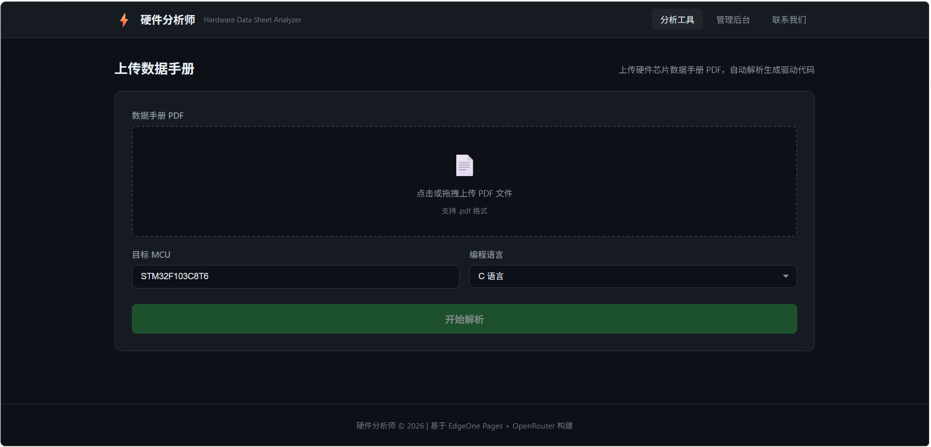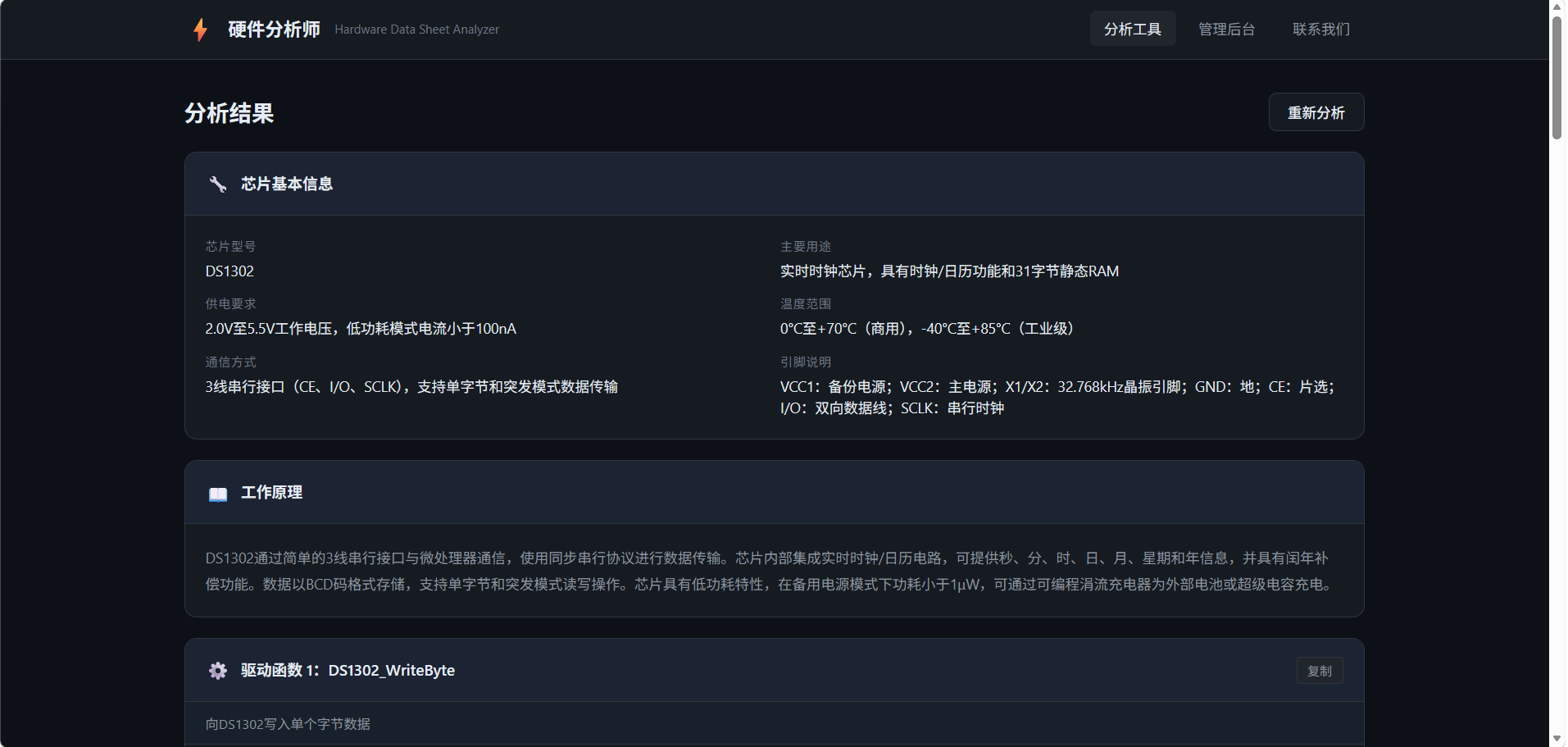 项目用途:硬件分析师 —— 自动解析硬件芯片数据手册 PDF,生成两个最主要的驱动函数代码、一个初始化函数代码、硬件信息解析。