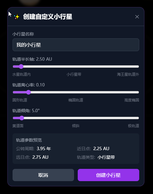 [此处建议插入 4~5 张截图:首页全景 / 行星信息卡 / 小行星创建器 / 任务面板 / 手机端]