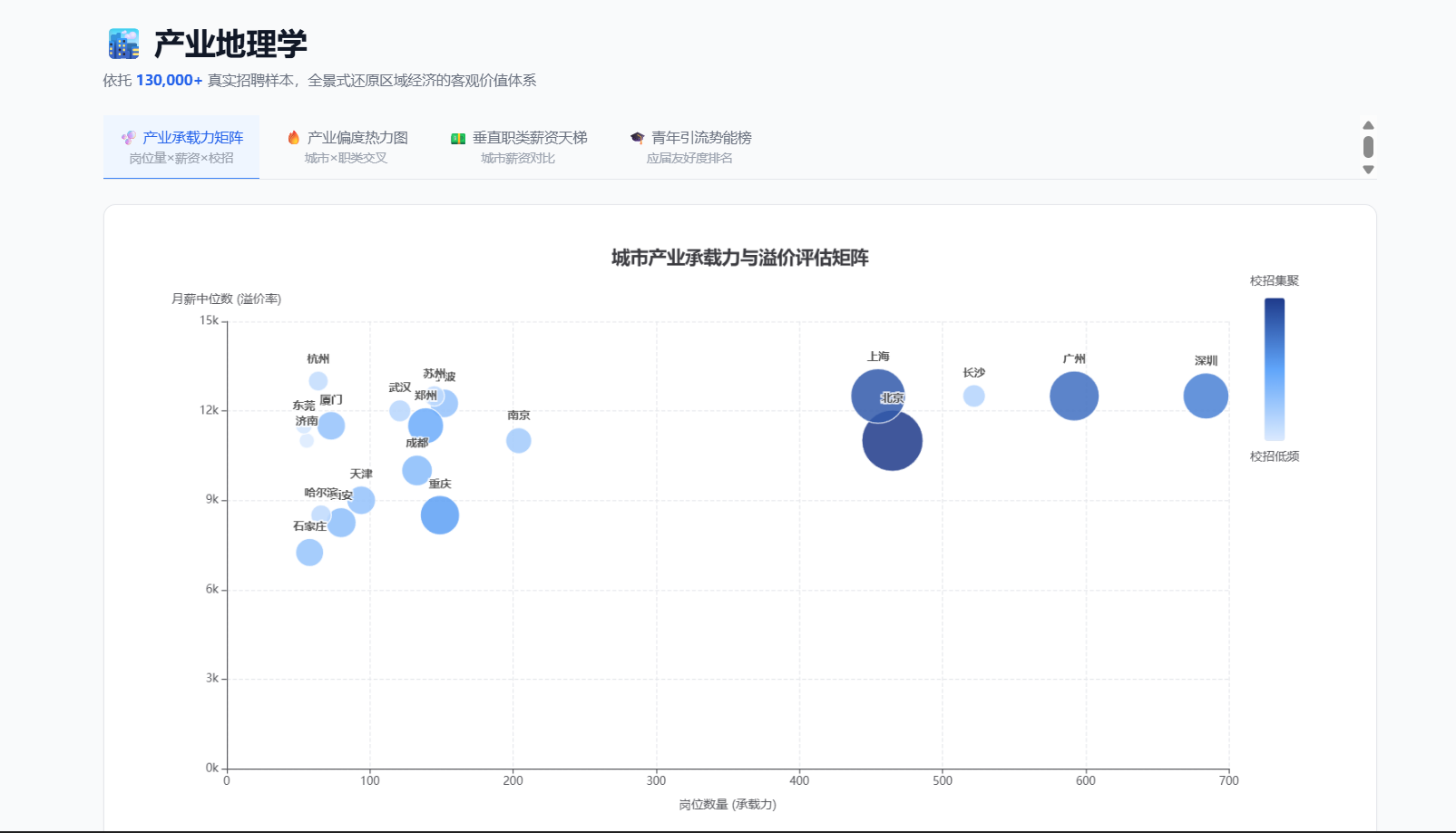 目标人群:以应届生为主的求职者,典型画像是"缺乏实习、对市场技能栈和城市薪资无宏观概念、投递靠海投"的在校学生,次要受众是高校就业指导中心。