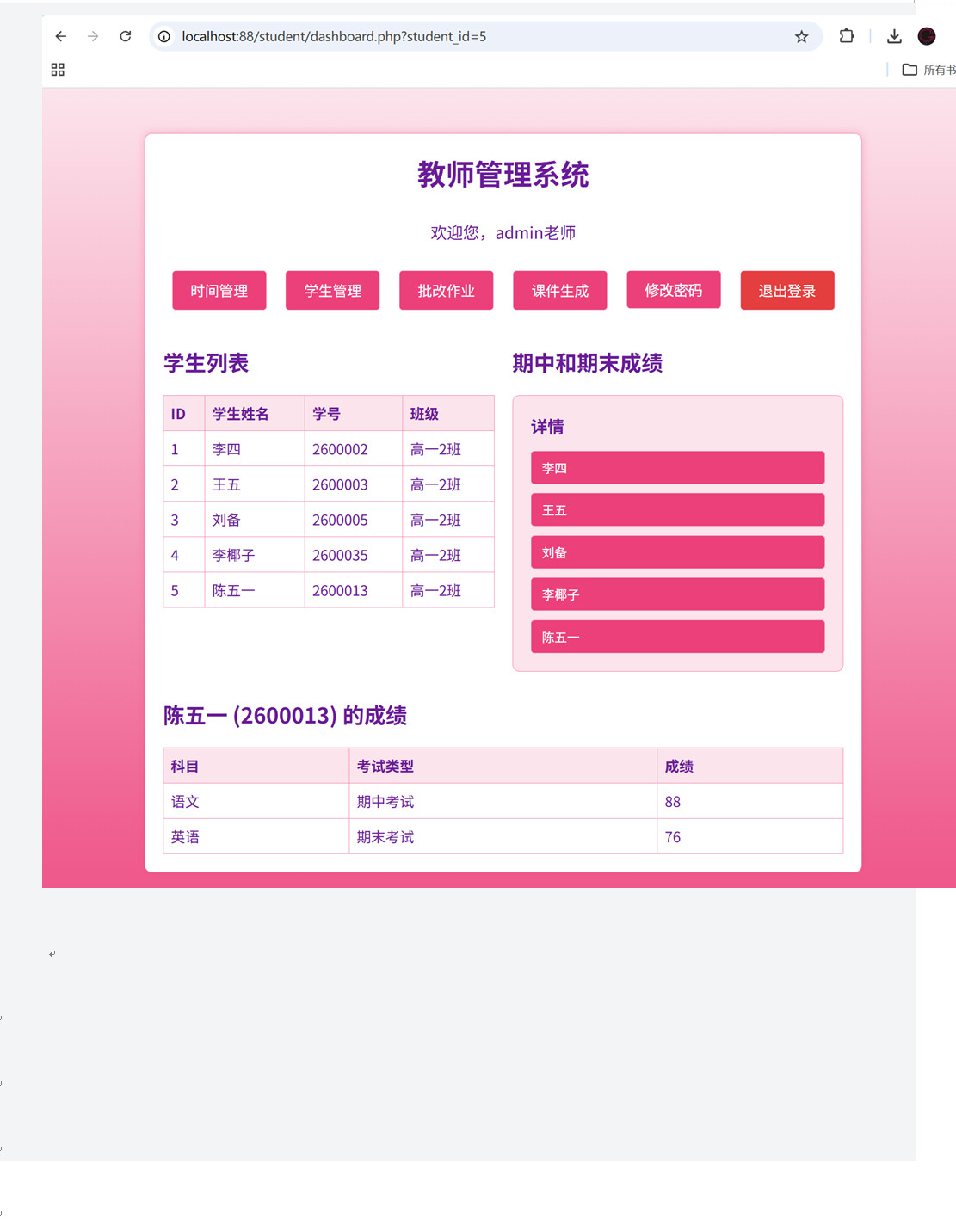 2. 老师可以管理学生的期中成绩和期末成绩;