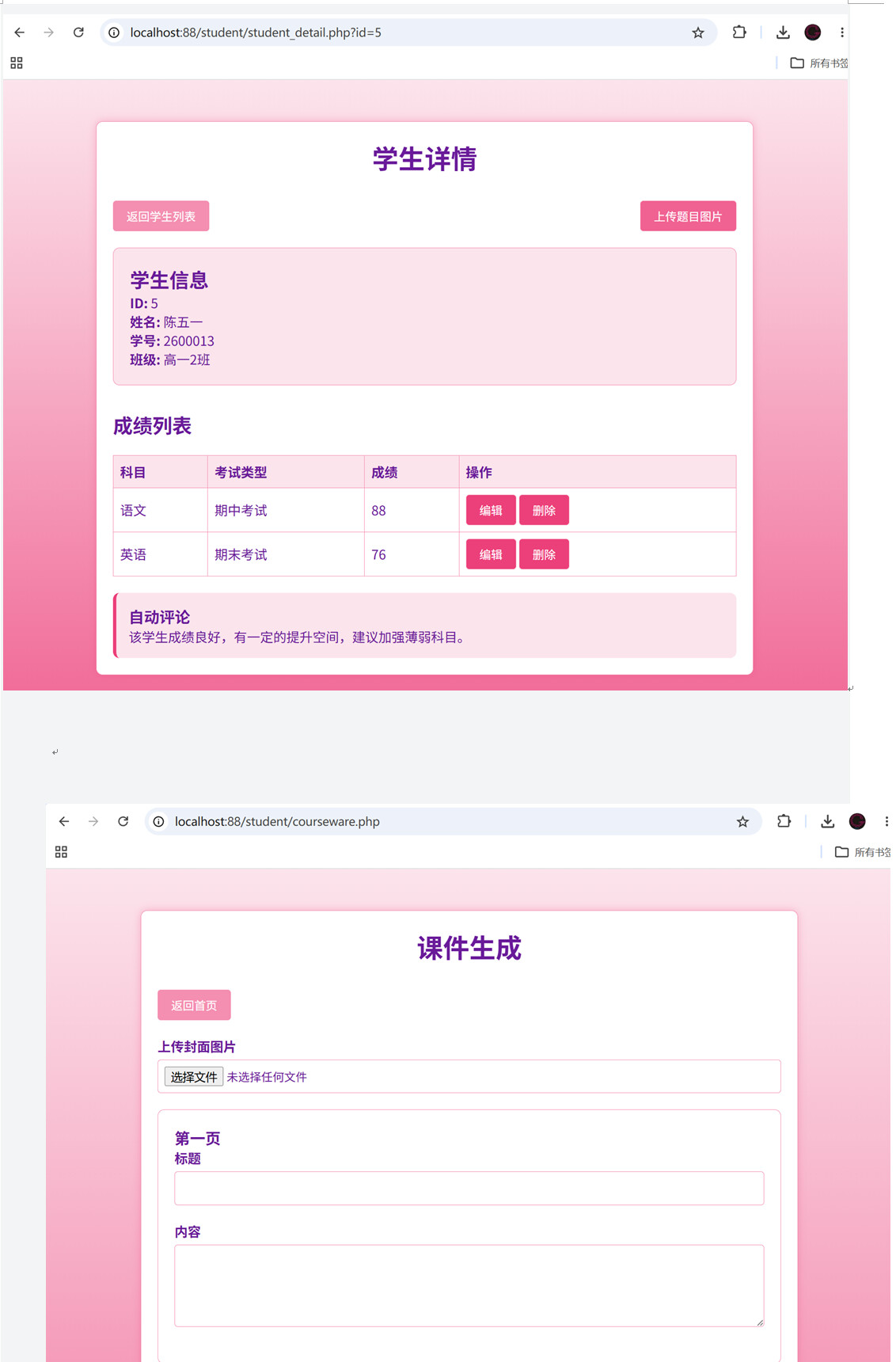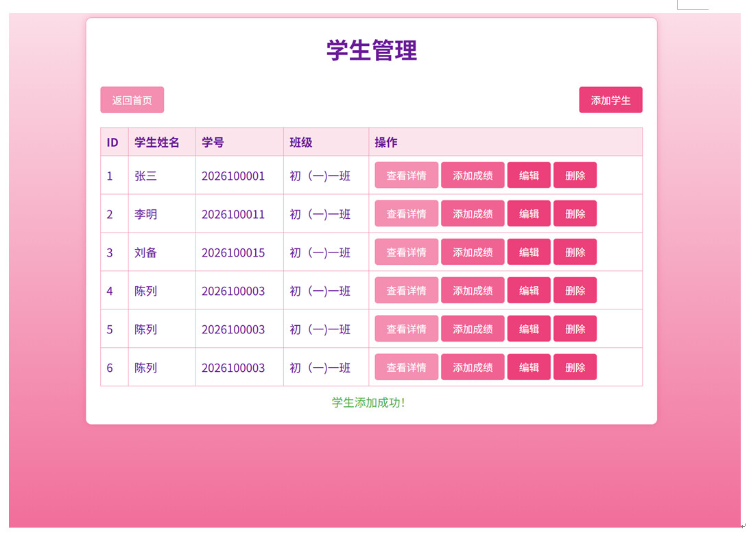 学生管理的页面生成成功;