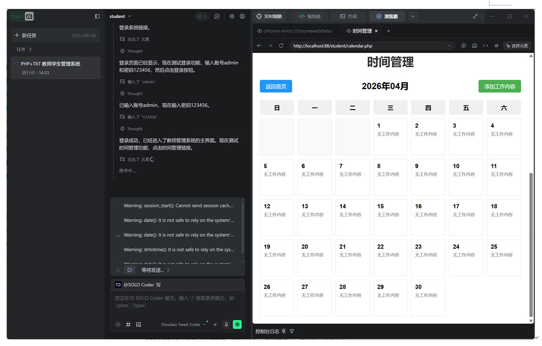 时间管理的页面生成成功;