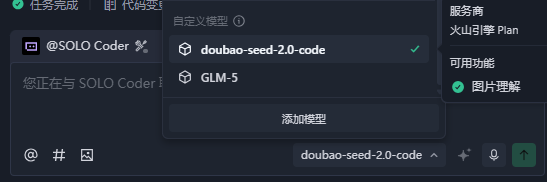 求助,我自定义添加了doubao-seed-2.0-code模型,服务商是火山引擎Plan: