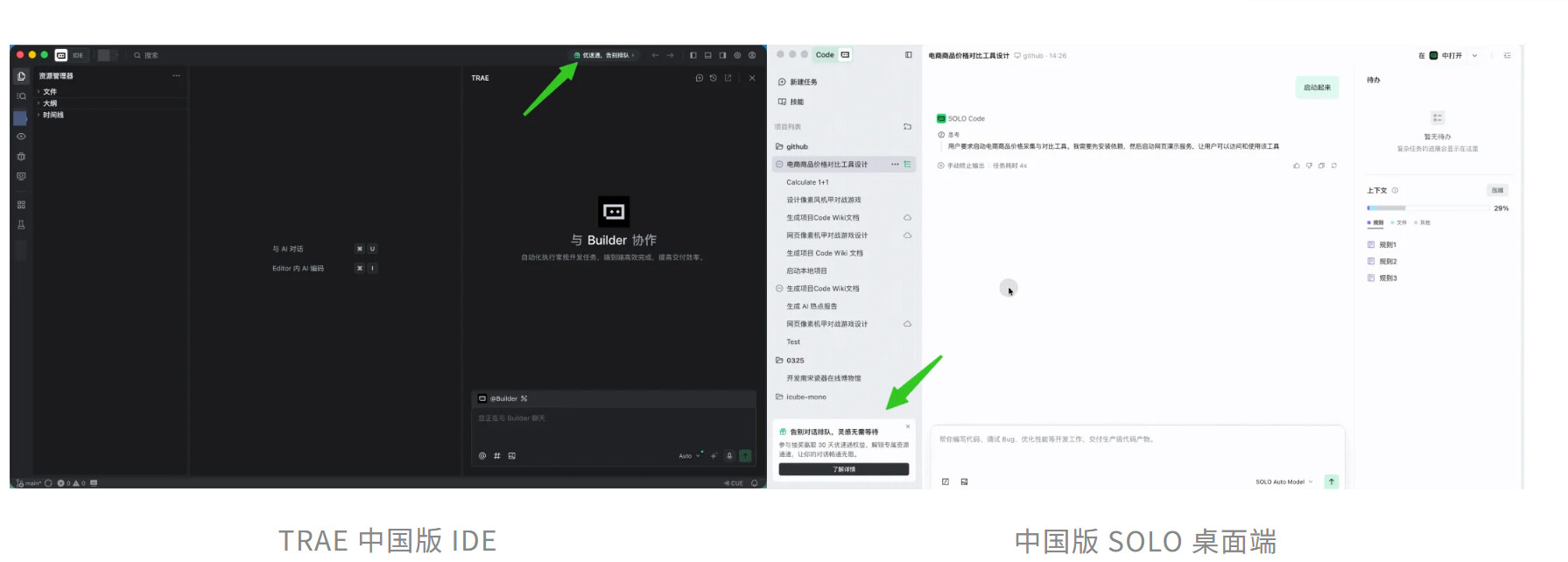 在 TRAE 中国版 IDE 及 SOLO 桌面端均有以下 2 个活动入口: