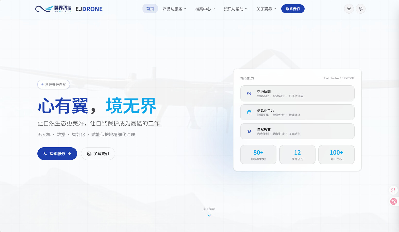 最近接手了一个非常硬核且充满意义的项目——为公司开发全新的官方网站。(其实是公司采购的官网太丑了,抽空用solo模式自己重写了一下)不仅要展示无人机空地协同监测、低空经济等前沿业务,还要完美呈现生态保护的自然科技美感。