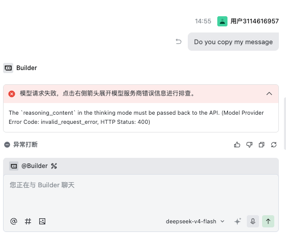 ds的v4百分百报错,flash和pro一样的问题,等待trae升级吧
