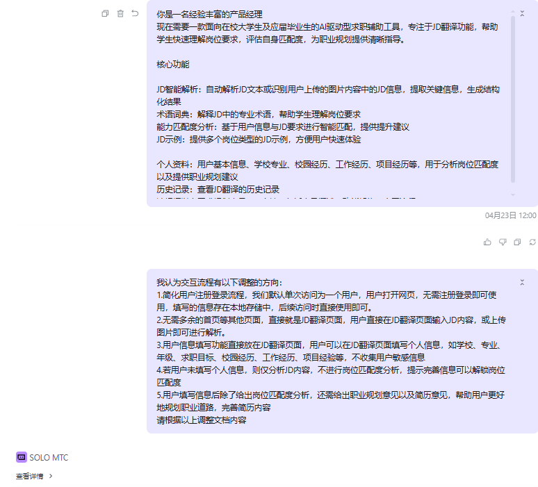 ①使用MTC模式规划需求文档,并调整trae solo给出的方案;
