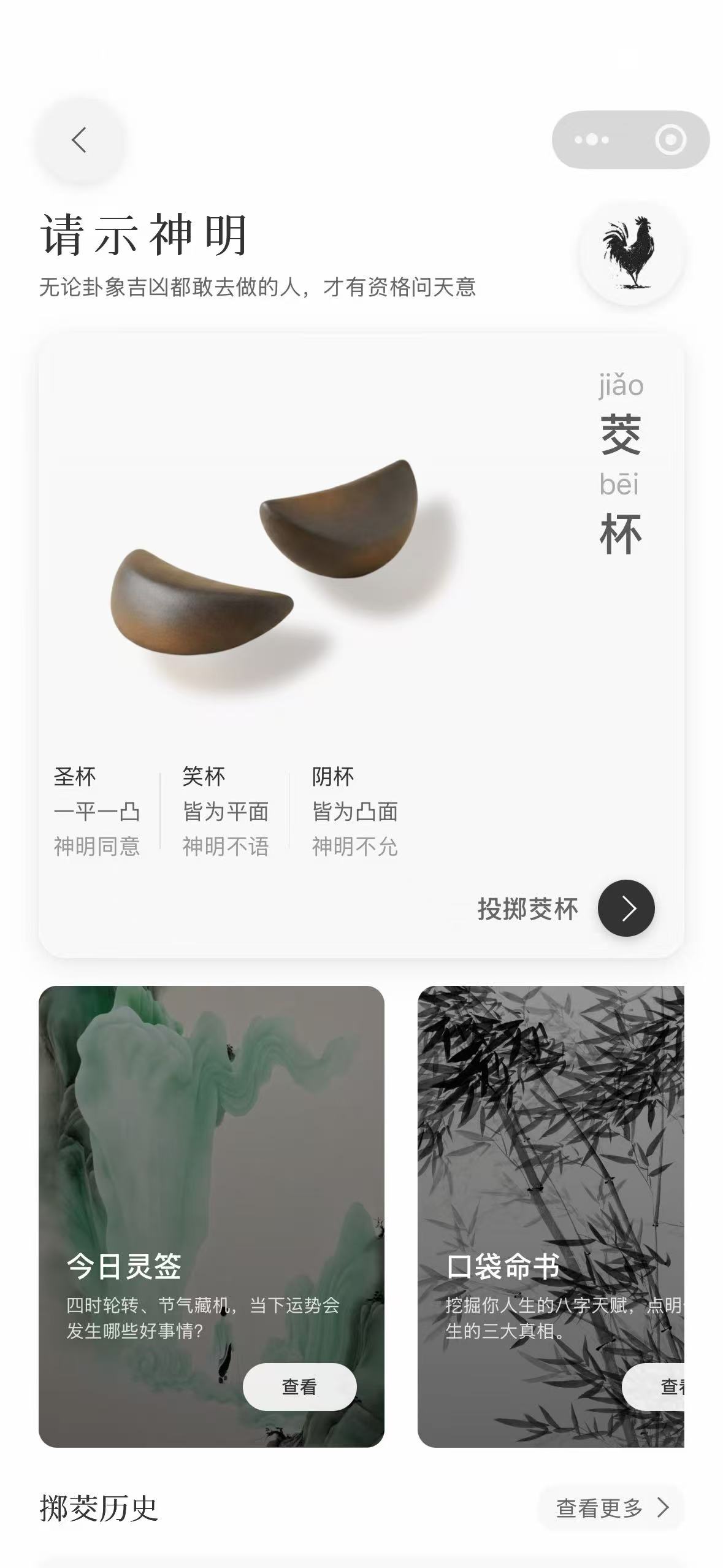 “准啦”是一款传统文化赛博玄学小程序产品,提供了茭杯问事、命书报告、AI聊天等功能。