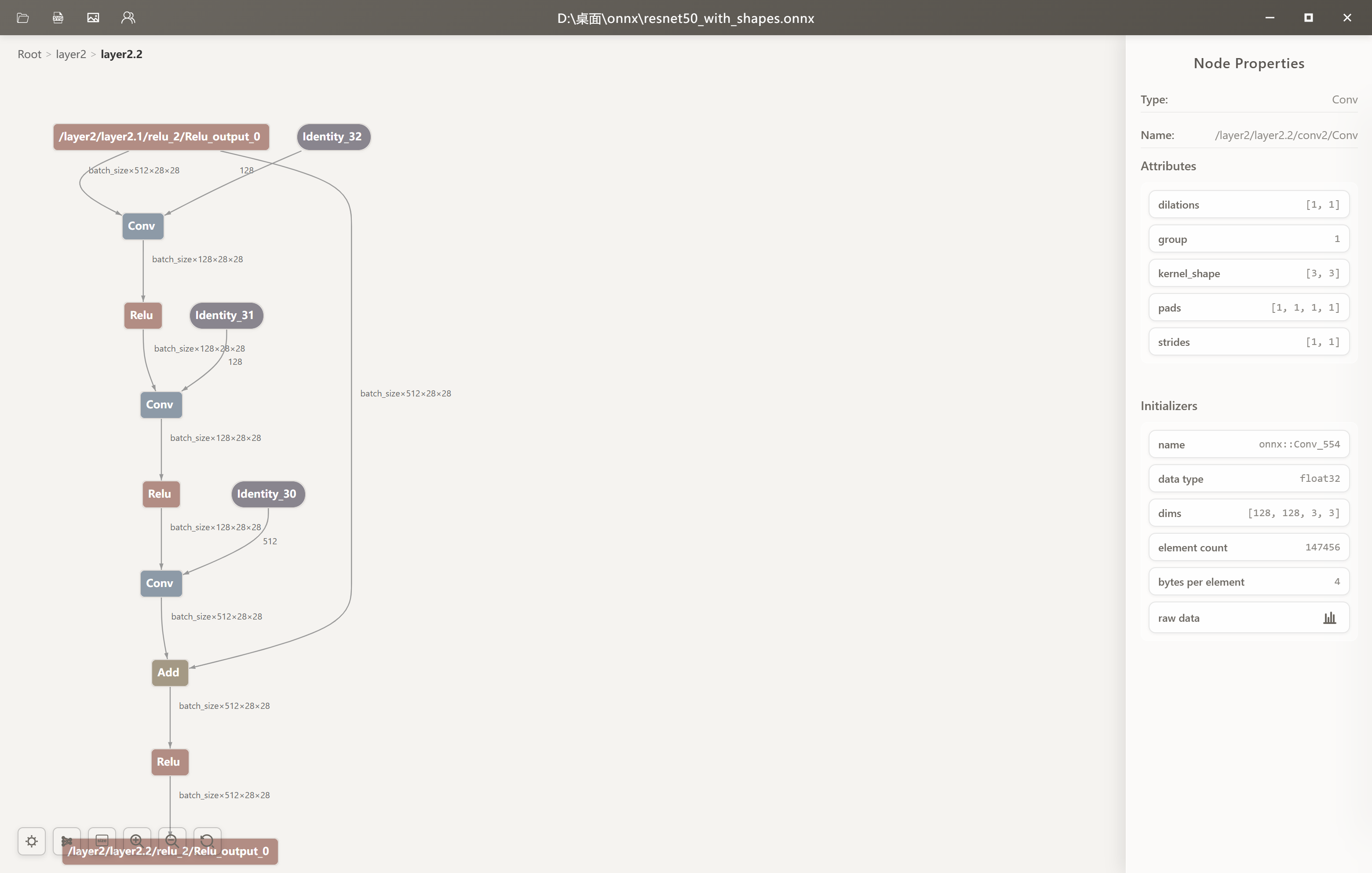 可以看到他不会直接把所有的网络结构都显示出来,而是分块显示,如果想看其中一个块的内容,继续点进去就好
