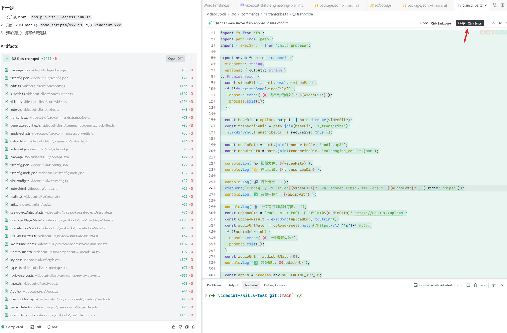需要一键 keep 所有修改,现在只能一个一个文件 keep,太麻烦了