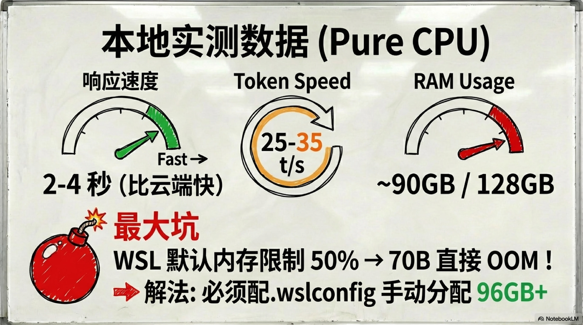 最大坑: WSL 默认内存限制 50% → 70B 模型直接 OOM!