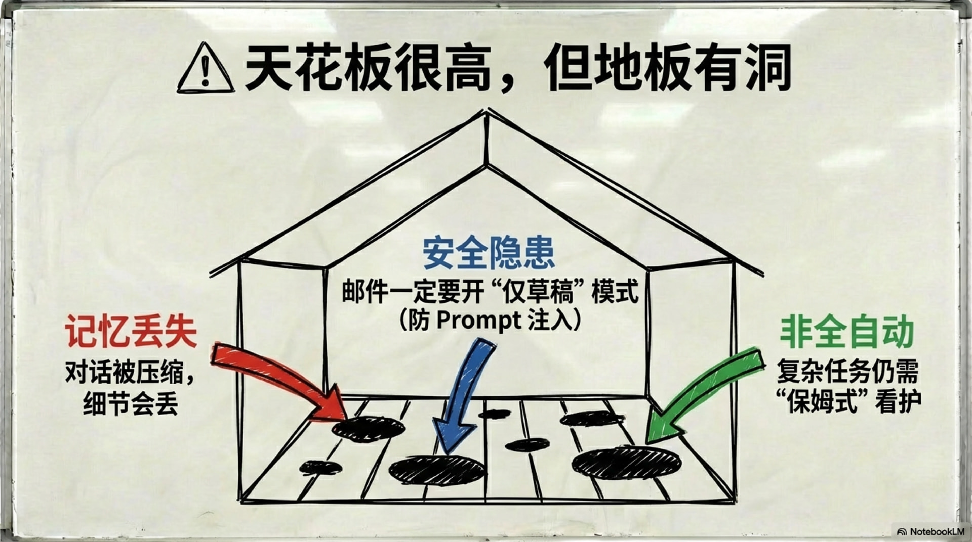 安全隐患 —— 邮件一定要开"仅草稿"模式(防 Prompt 注入)。