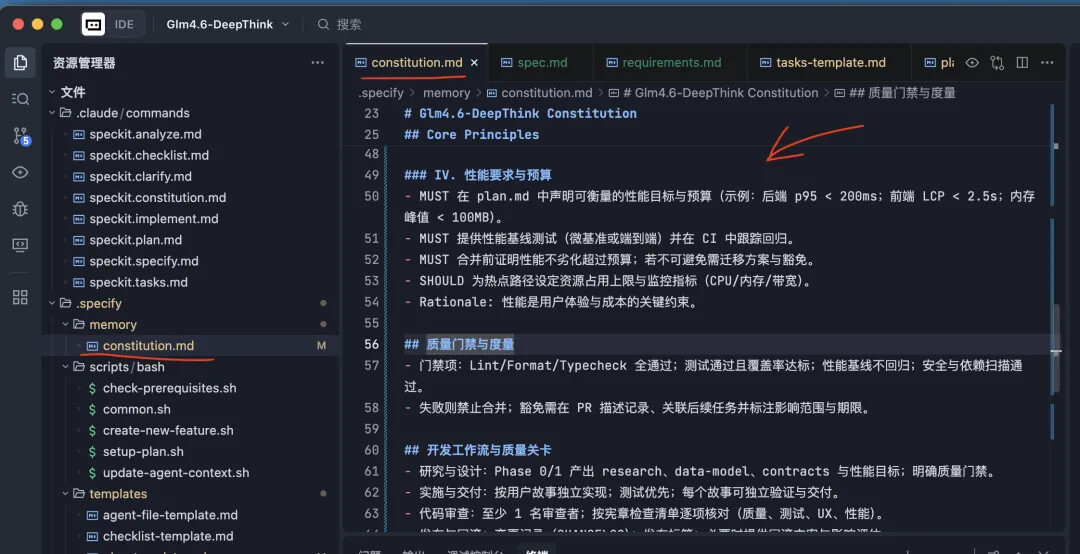 输出成果:生成 constitution.md 文件: