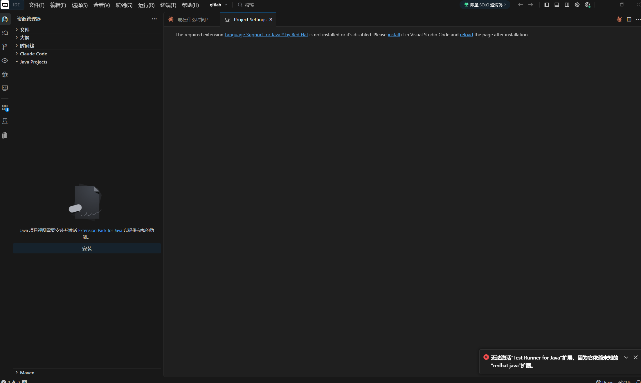 在扩展商店找不到Language Support for Java™ by Red Hat 这不就跑不了Java项目了?