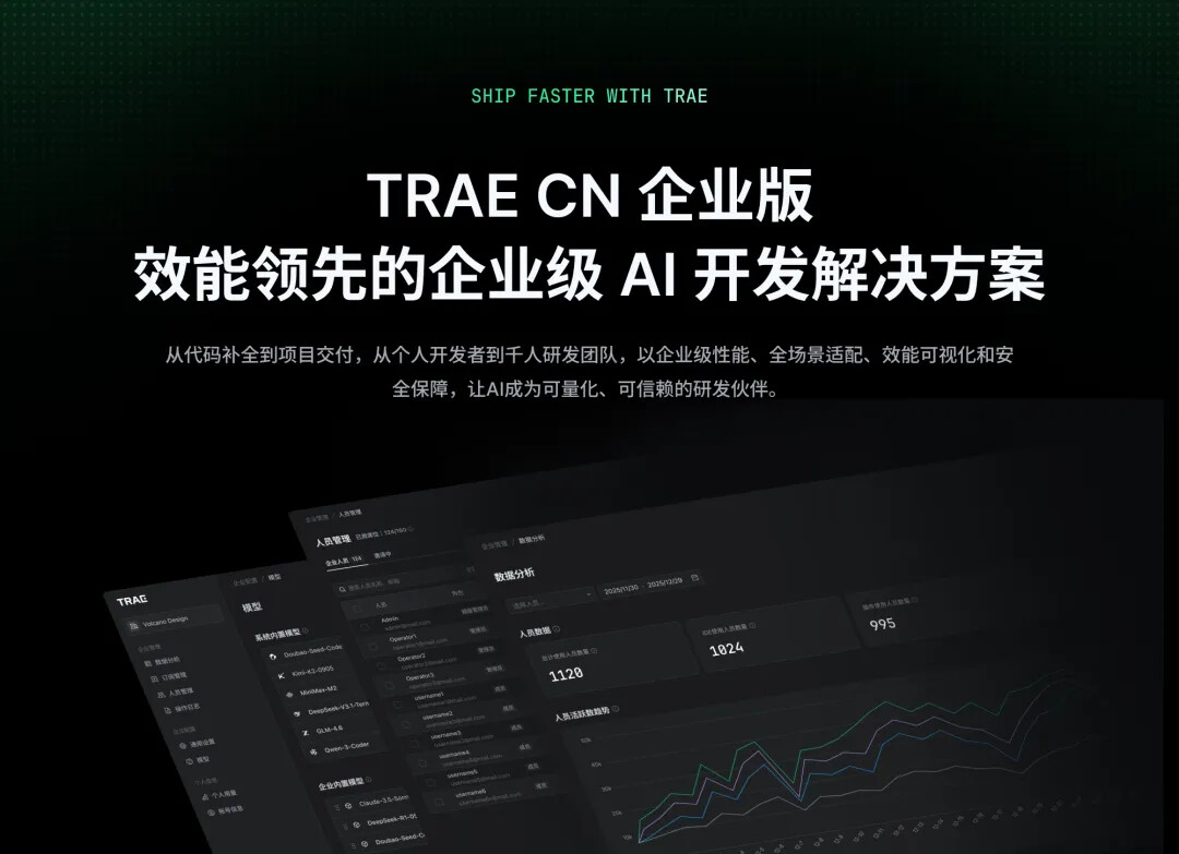为了给企业用户带来更好的服务,TRAE CN 企业版也已发布,针对企业研发的性能要求、部署适配、效能追踪和代码安全四大“刚需”进行了全面优化。
