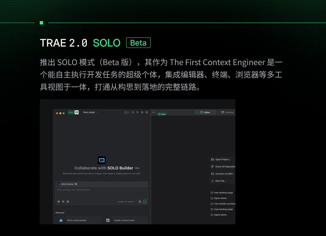 - 同时,无论是 IDE 还是 SOLO 模式,TRAE 都在为开发者提供更丰富的上下文和更具响应式的功能。