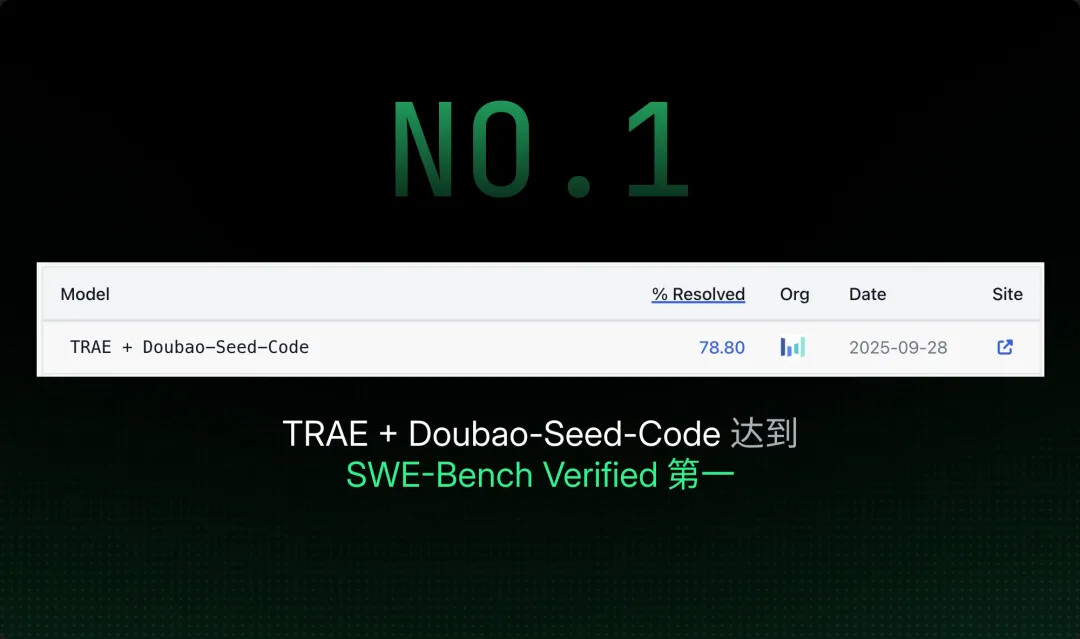 此外,TRAE Agent 算法始终创新迭代,在内外部的评测集分数都有显著提升;其中在 SWE-Bench Verified 榜单中,TRAE 无论是在闭源 SOTA 模型还是在字节自研模型上,都达到了第一。