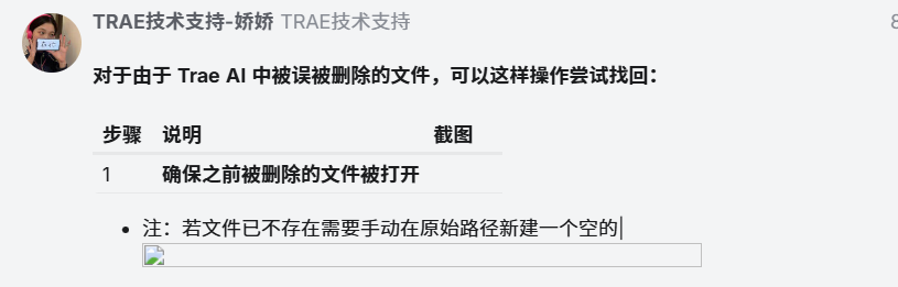 对于由于 Trae AI 中被误被删除的文件,可以这样操作尝试找回: