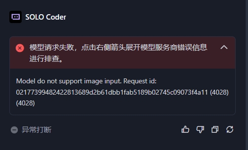 Trae CN 火山引擎-plan 使用 image input 会出现模型请求失败,