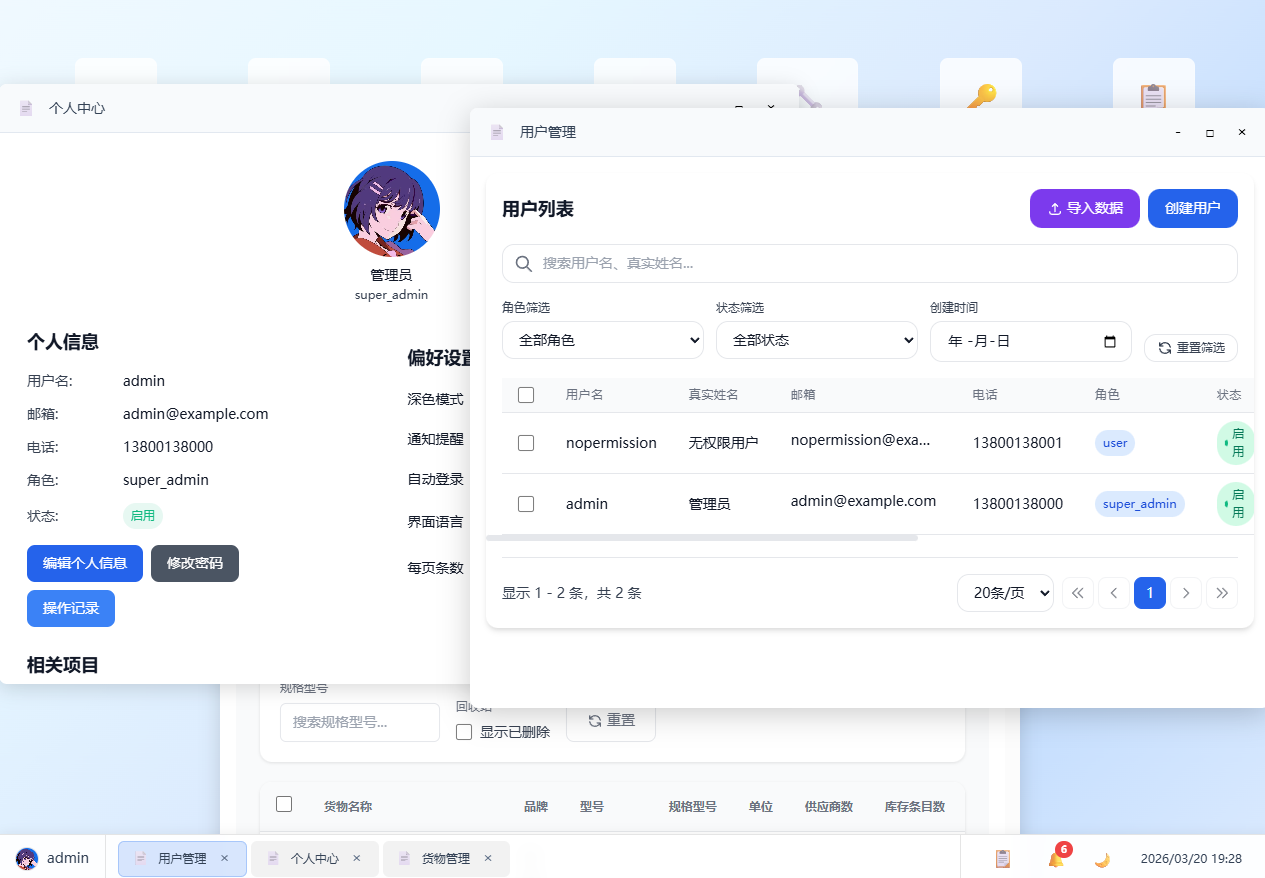 - 货物信息管理、供应商关联、数据统计分析、Excel导入导出 -