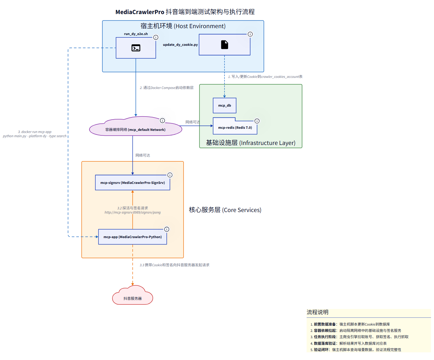 顺着这个极其朴素的需求,我构建了 ContextWeave (织境)。为了不改变大家现有的开发习惯,它被设计成了一个轻量级的标准协议和技能(Skill)。现在,你只需要像平时一样在对话框里对 Agent 说:“调用 Skill 给我梳理下这个完整的端到端测试流程”。接下来的“脏活累活”,就全交给系统自动流转:Agent 会先充当“需求翻译”,把你非结构化的大白话转化为一份标准的结构化绘图意图请求(如 Markdown 描述);随后,ContextWeave 的核心编排服务会在后台将这份请求动态编译为底层的 `.cw` 代码,并最终渲染为一张排版完美、连接精准的交互式 SVG 图表。你只管专注思考全局架构,无需再去纠结排版与连线。