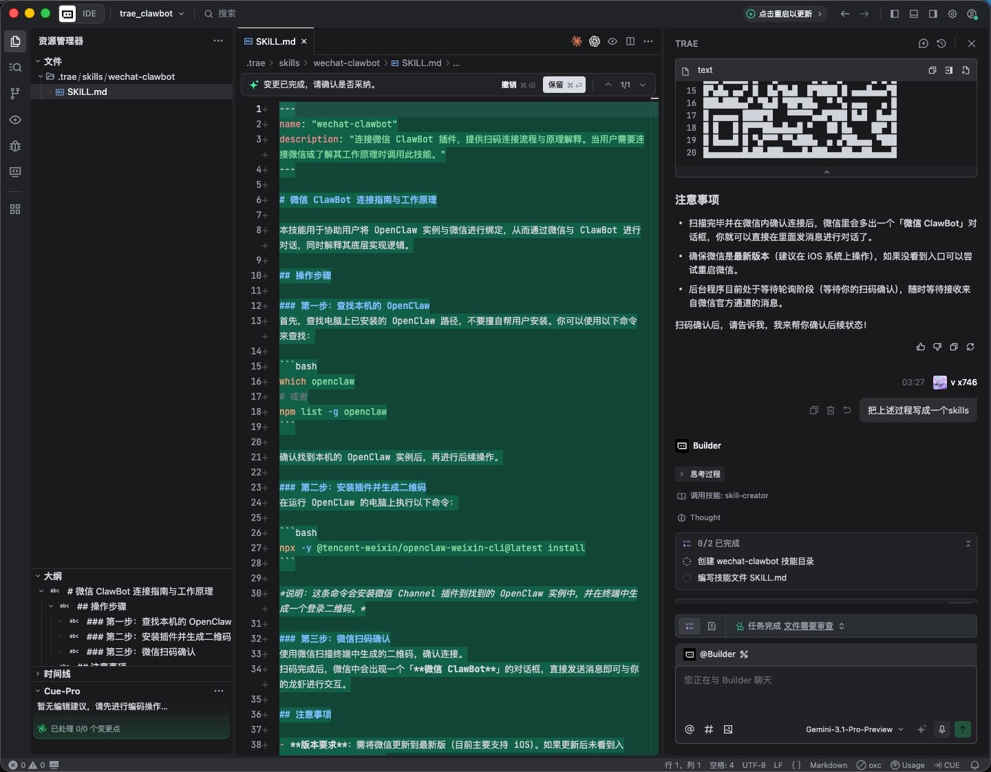 复制下面这段话给你安装了龙虾的电脑的trae,让它快速帮你配置,全程掏出手机扫码/更新微信即可。