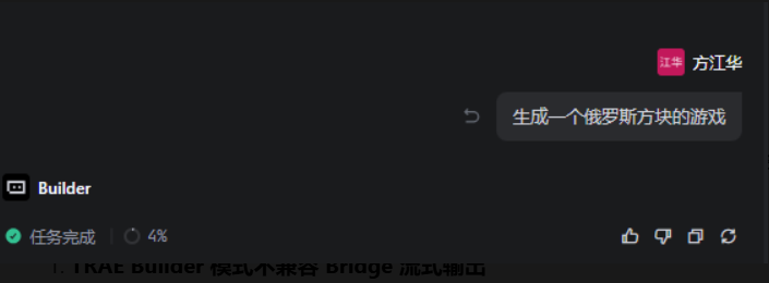 4.执行时选择该自定义模型,Trae最终无任何报错,仅显示下图状态