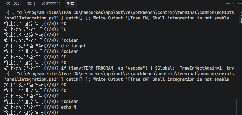 当执行命令的时候总是会出现”终止批处理操作吗(Y/N)”