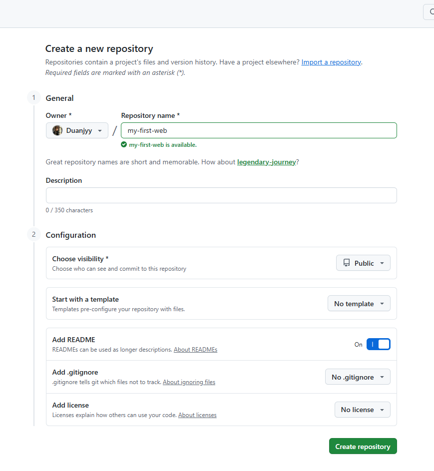 my-first-web - 勾选 Public(免费必须公开)