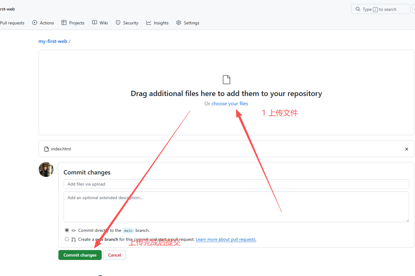 - 拉到最下面,点击 Commit changes