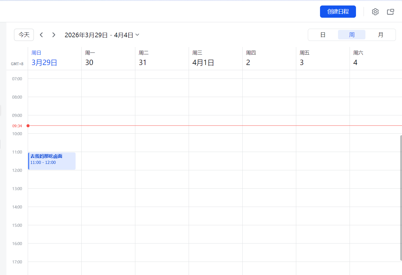 lark-cli calendar +create --summary "日程标题" --start "2026-03-29T11:00:00+08:00" --end "2026-03-29T12:00:00+08:00" --description "日程描述"