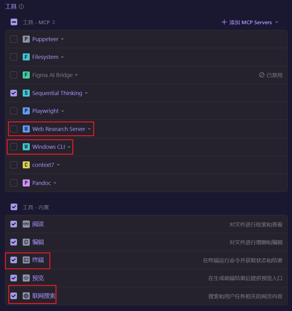 内容工具中有“联网搜索”,就不需要上面的Web Research Server?