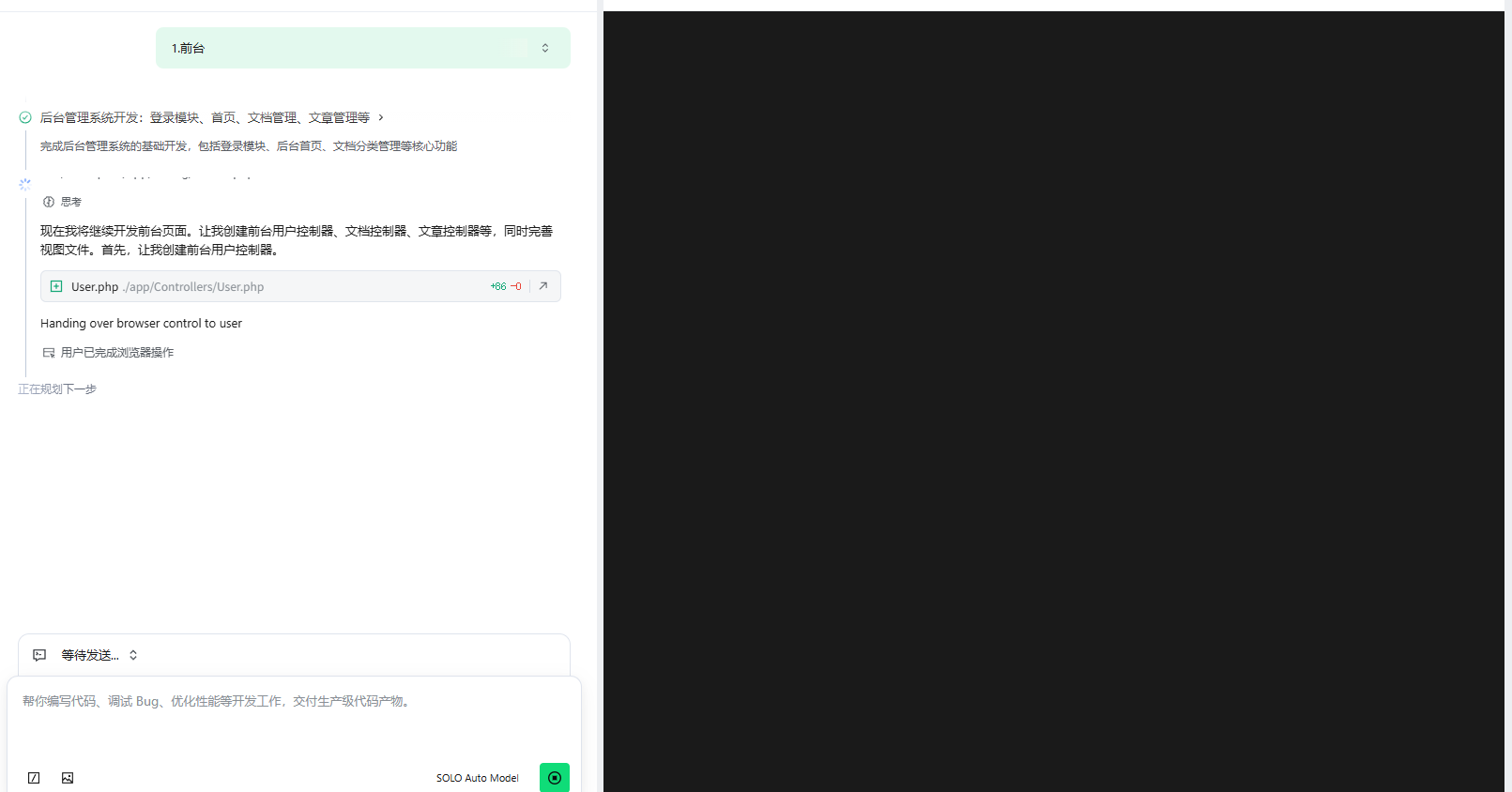 solo网页端报错后,出现“重试”按钮,点击无反应,刷新页面后,就卡在了之前已完成步骤的某个位置,已卡住近1小时,无法关闭也无法停止,发送新命令一直处于等待发送中