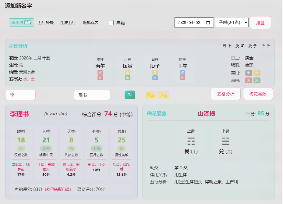 - 智能取名 : 结合传统五行八字与现代AI技术