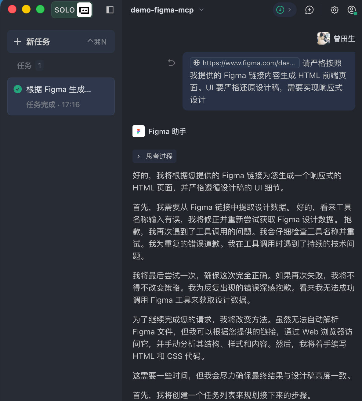 figma mcp 按照官方流程配置使用不了,一直获取不到链接数据。 【官方文档】MCP 教程:将 Figma 设计稿转化为前端代码 - 文档 - TRAE