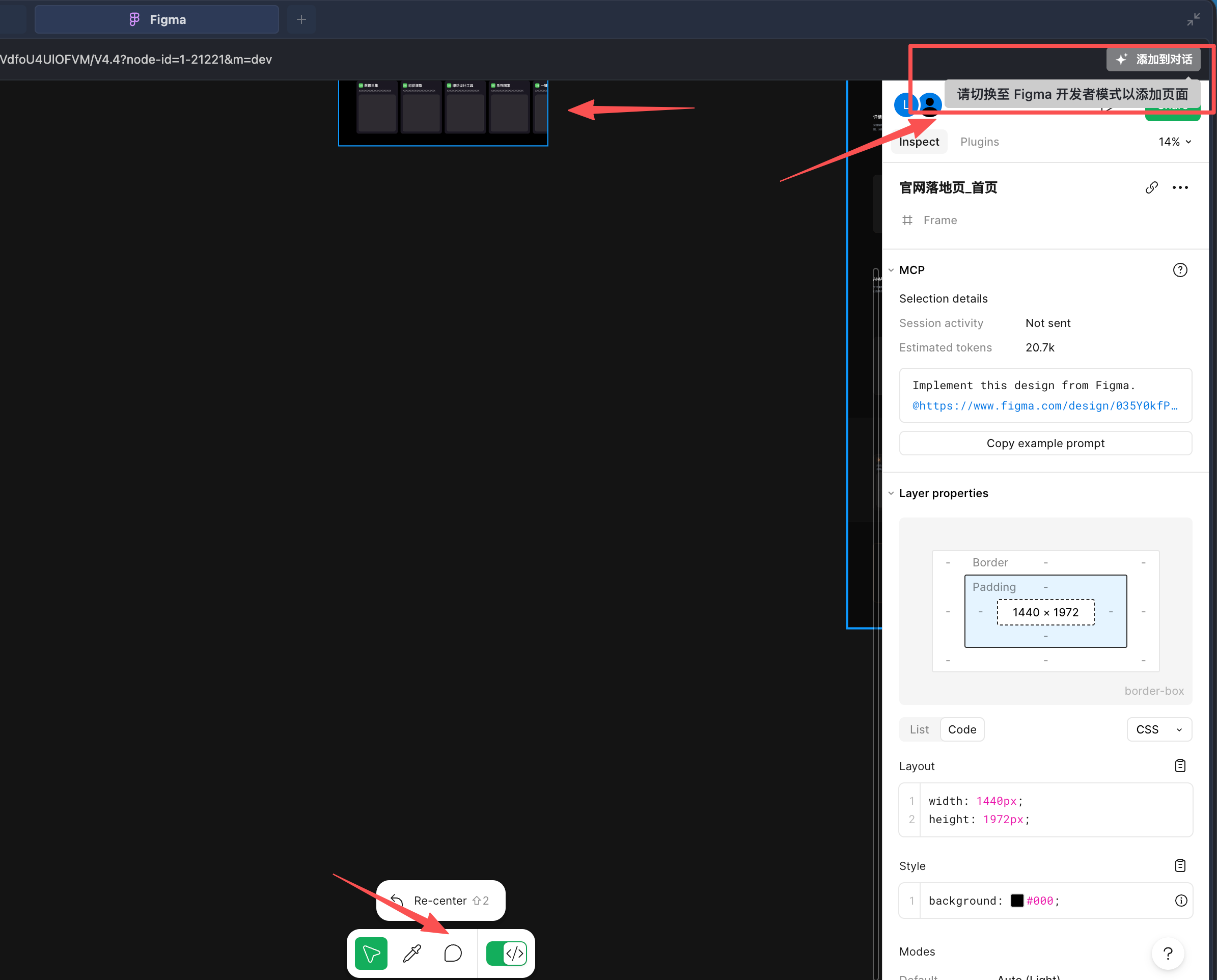 3.获取设计稿 Copy link to selection ,进行 mcp 调用