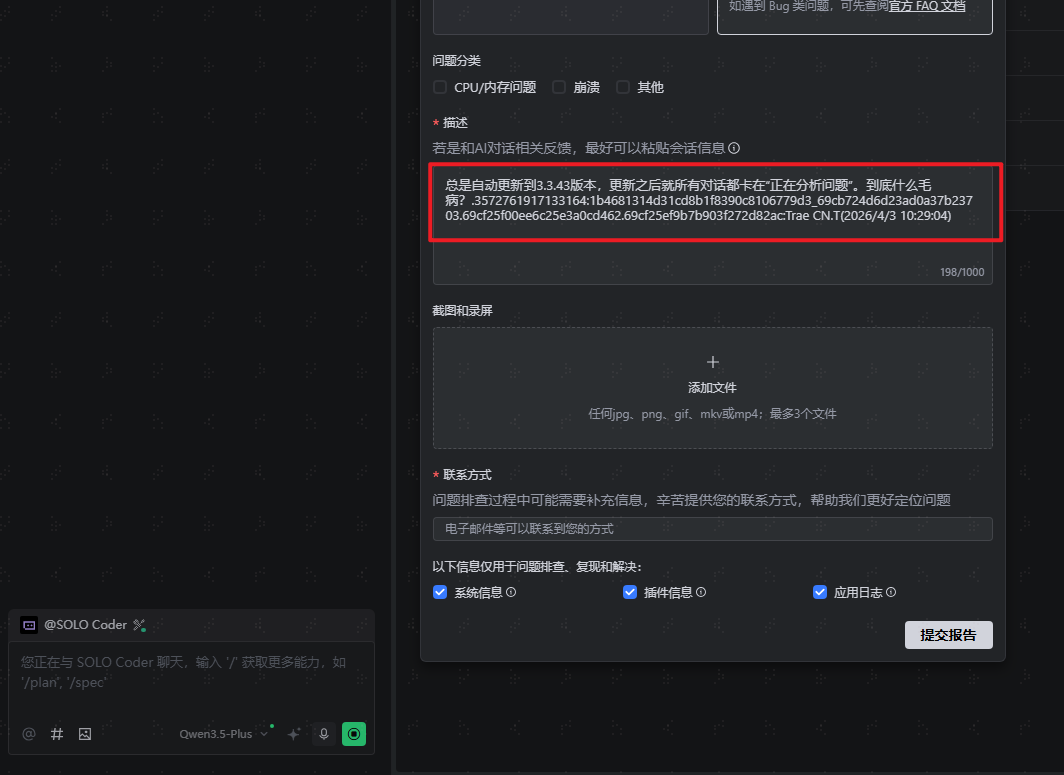 图片左边是对话卡在这移动不动,报告问题都出错。