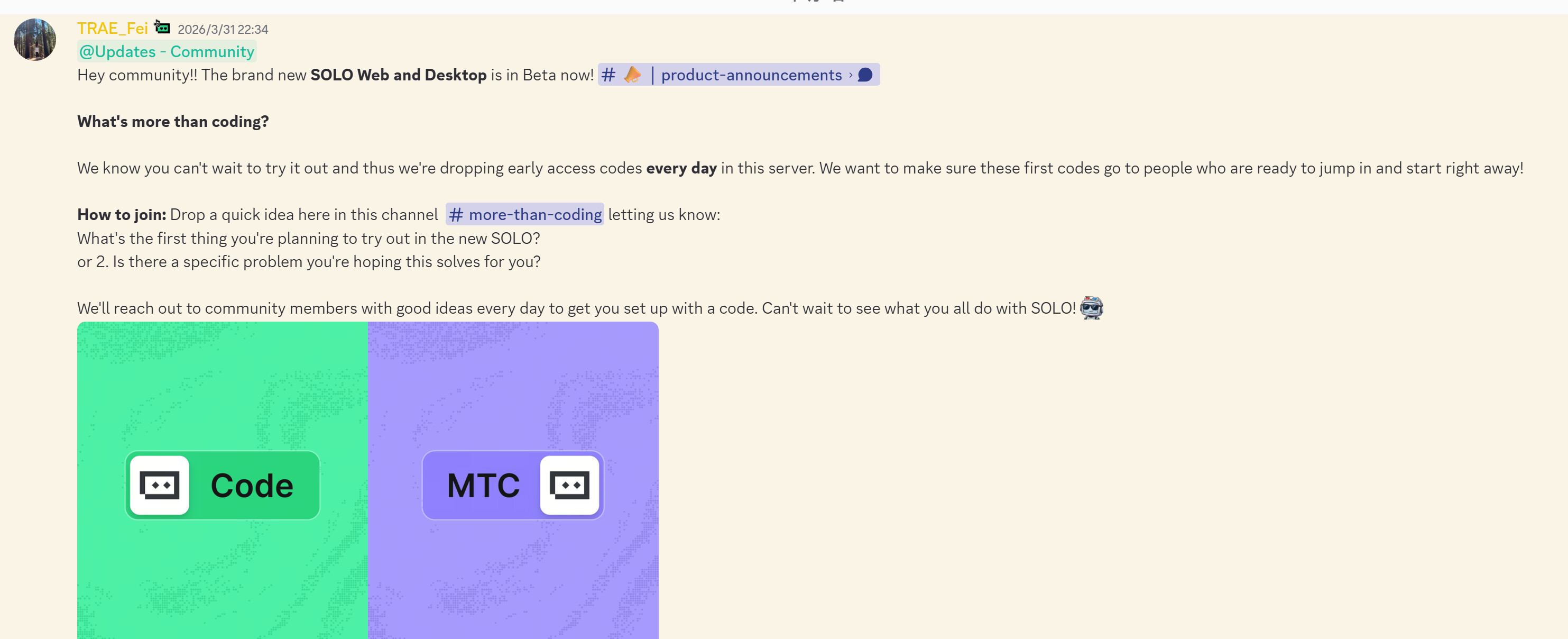中国版申领 : 【全新 SOLO 中国版资格】每天200个发放说明 - TRAE 官方中文社区专属(4.7-4.12)