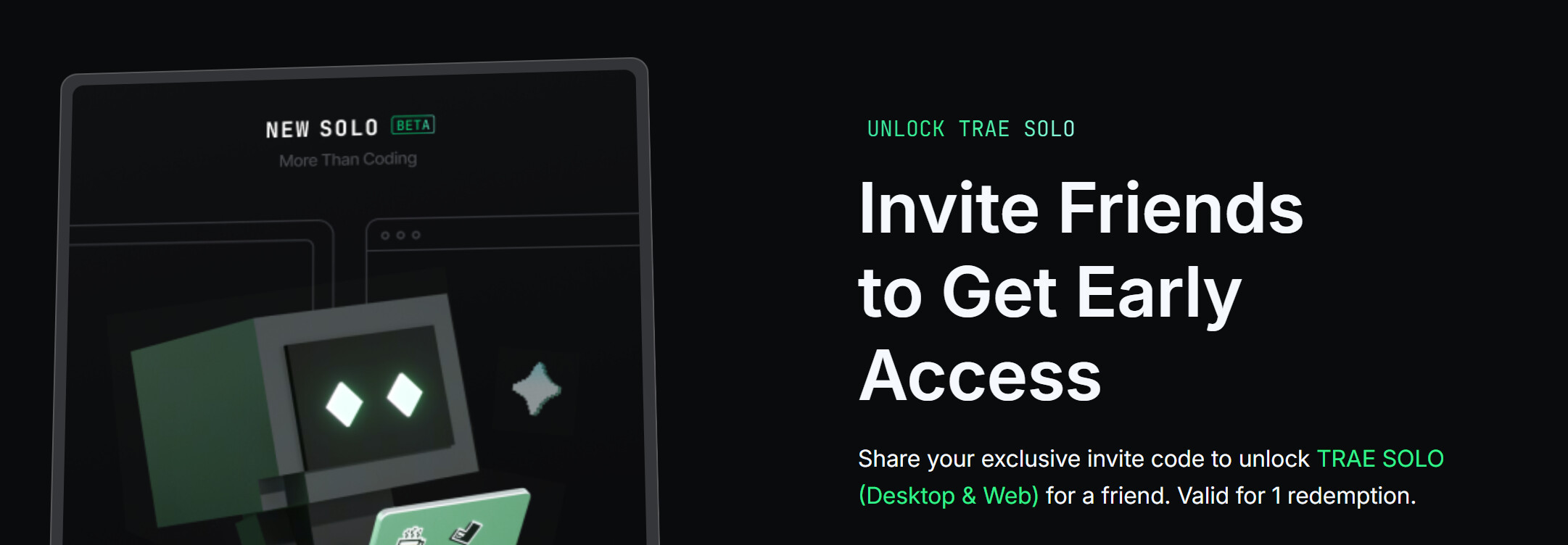 有没有小伙伴需要TRAE SOLO邀请码的,评论区最高热度的小伙伴将获得一个内测邀请码,快来吧,哈哈哈哈保真,今天晚上8点截止。